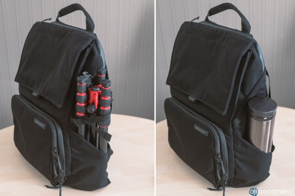 バッグ側面についているポケット。三脚や水筒などが入るポケット。